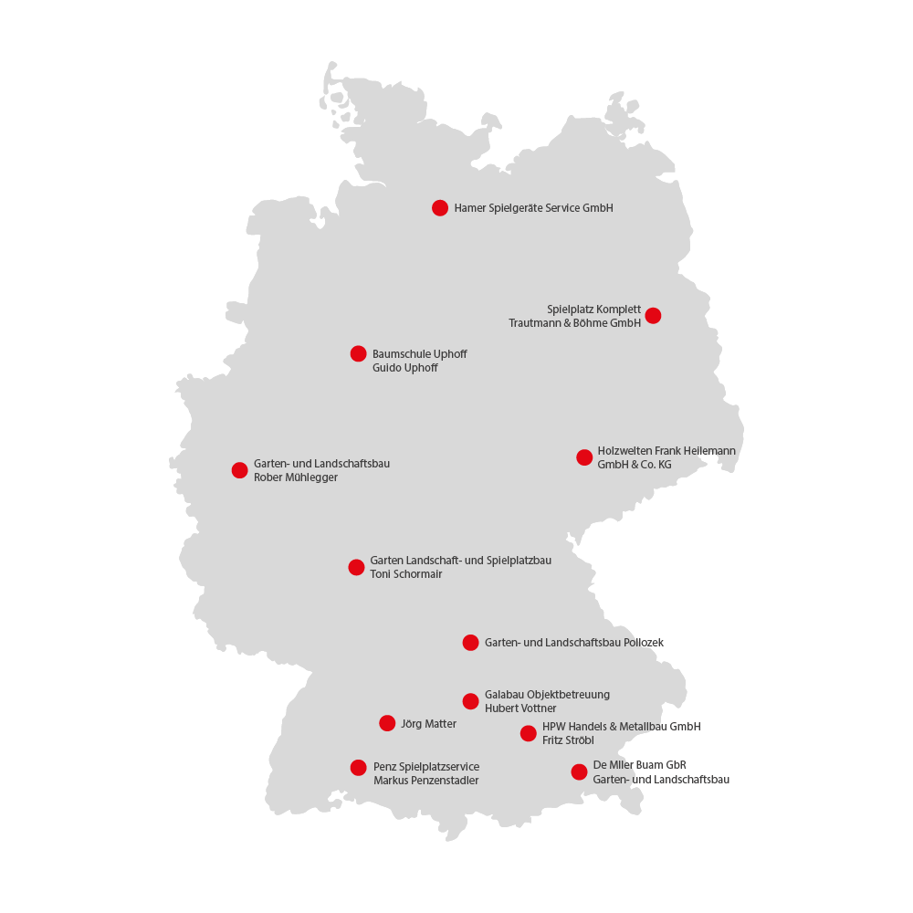 Neben dem deutschsprachigen Raum gewinnen Auslandsmärkte wie die USA, Großbritannien, Russland und Australien für uns immer mehr an Bedeutung. Derzeit arbeitet die Richter Spielgeräte GmbH mit 23 Auslandsvertretungen vertrauensvoll zusammen. Unsere Partner suchen wir sorgfältig aus, da es uns am Herzen liegt, bei unserer Arbeit Aspekte wie Selbstbestimmung, Wartungsfreundlichkeit, Sicherheit, Spielwert, Stabilität und verantwortungsbewusste Umweltorientierung in den Vordergrund zu stellen. All diese Gesichtspunkte haben sich über fünf Jahrzehnte bewährt und sind heute bei unseren in- und ausländischen Partnern qualitativ anerkannt.Derzeit bauen wir unsere Kontakte in Japan, Israel und Südafrika aus. Insgesamt sind wir weltweit in 40 Ländern aktiv.