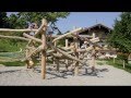 Climbing Structures made from handprocessed irregular round logs, can be integrated into a strongly natureoriented environment due to their formal expressive character. Many children can play within a small space; Climbing Structures can even absorb the arrival of a large number of children who wish to play on it and incorporate all of them within a flowing play rhythm. Climbing Structures do not only allow for climbing, experiencing height, and for having a sensual experience with hands and feet, but they can also be used as a nice seat for relaxing and observing.