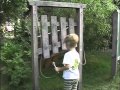 The Dendrophone is made up of harmoniously tuned sound boards which have been arranged like an oversized xylophone. If the lengths of the sound elements are changed different tones are produced and these are tuned and amplified with resonators. Hitting it, either with a percussion hammer or by hand, produces warm sounds and these can be made into melodies and rhythms. Several people can play on the equipment at the same time and create music together.